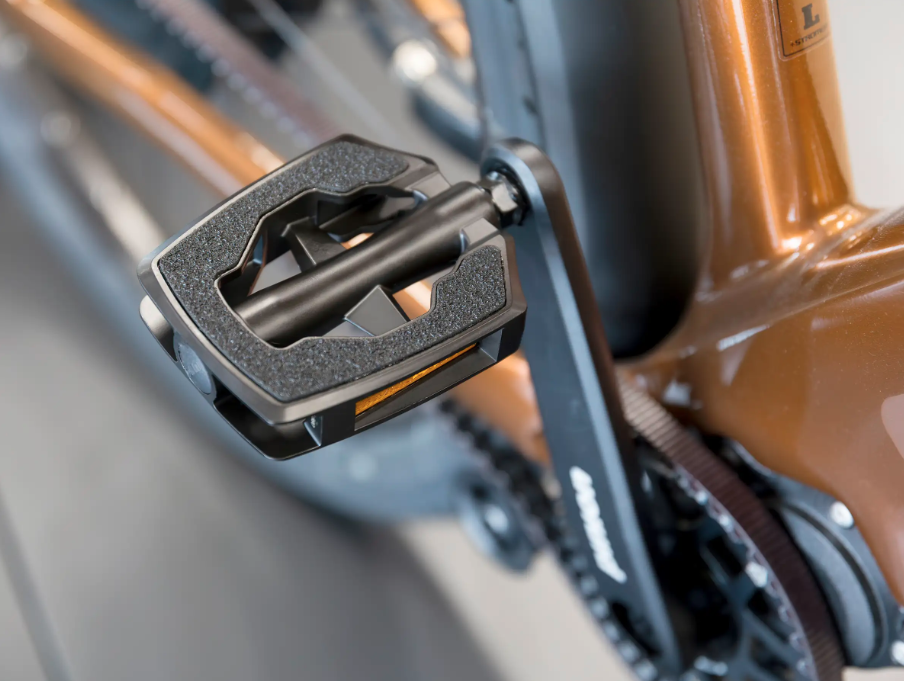 I modsætning til standardløsninger stikker SANDBLOCK®-materialet fysisk op over pedalhuset. Det sikrer, at din sko altid er i kontakt med den skridsikre overflade og ikke med den potentielt glatte pedalramme.